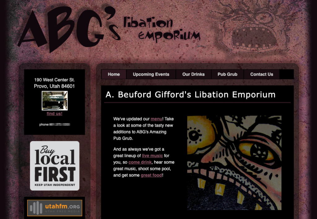 Custom Joomla highlighting upcoming shows as well as food and drink menus.